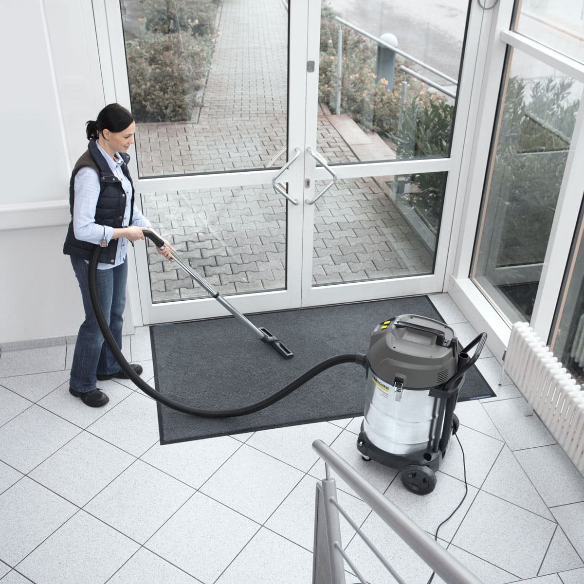 Aspirateur eau et poussières à 2 moteurs NT 50/2 Me Classic avec filtre cartouche et réservoir de 50 litres. Pour les saletés humides et grossières de toute sorte. Puissance d’aspiration, maniement et qualité au plus haut niveau !